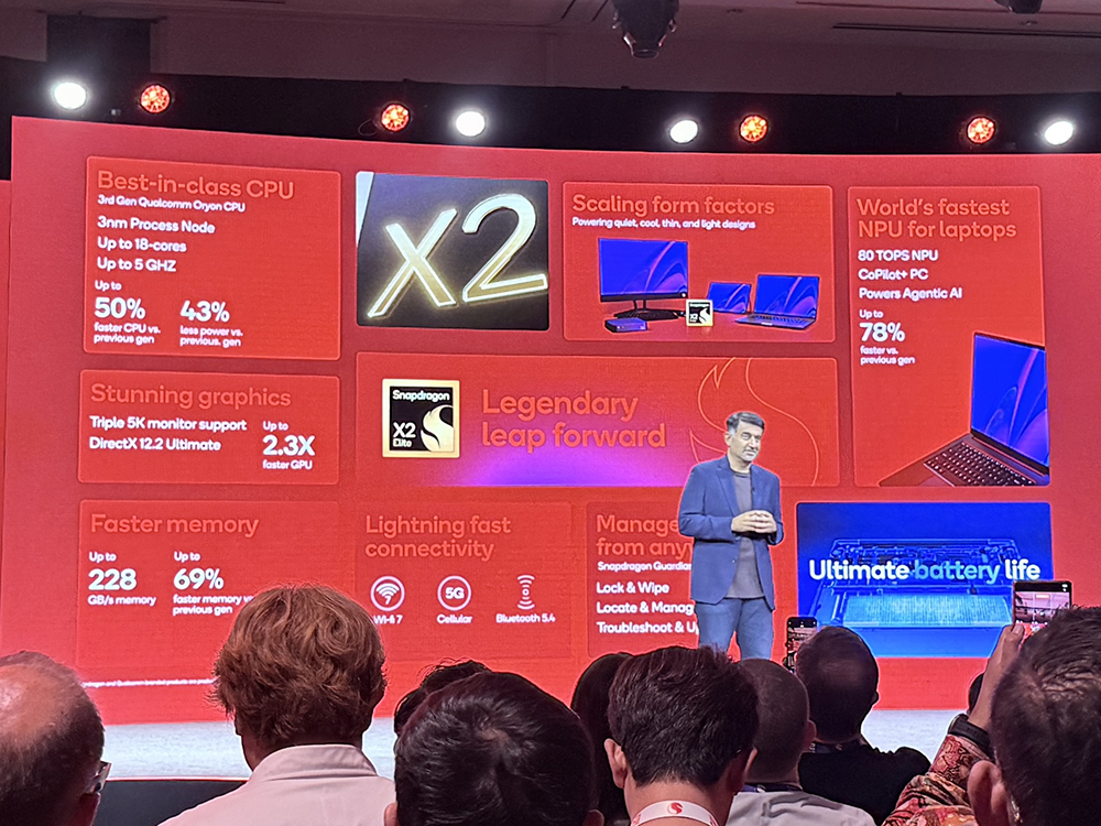 高通高级副总裁兼计算与游戏业务总经理Kedar Kondap称,骁龙X2 Elite强化了高通在PC行业的领导力,在性能、AI处理和电池续航方面实现突破性提升。