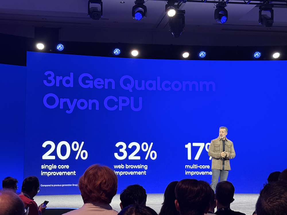 第三代Orion CPU专为AI应用量身打造,能够与高通Hexagon NPU无缝协作,协同调度机器学习任务,高效驱动AI智能体运行。