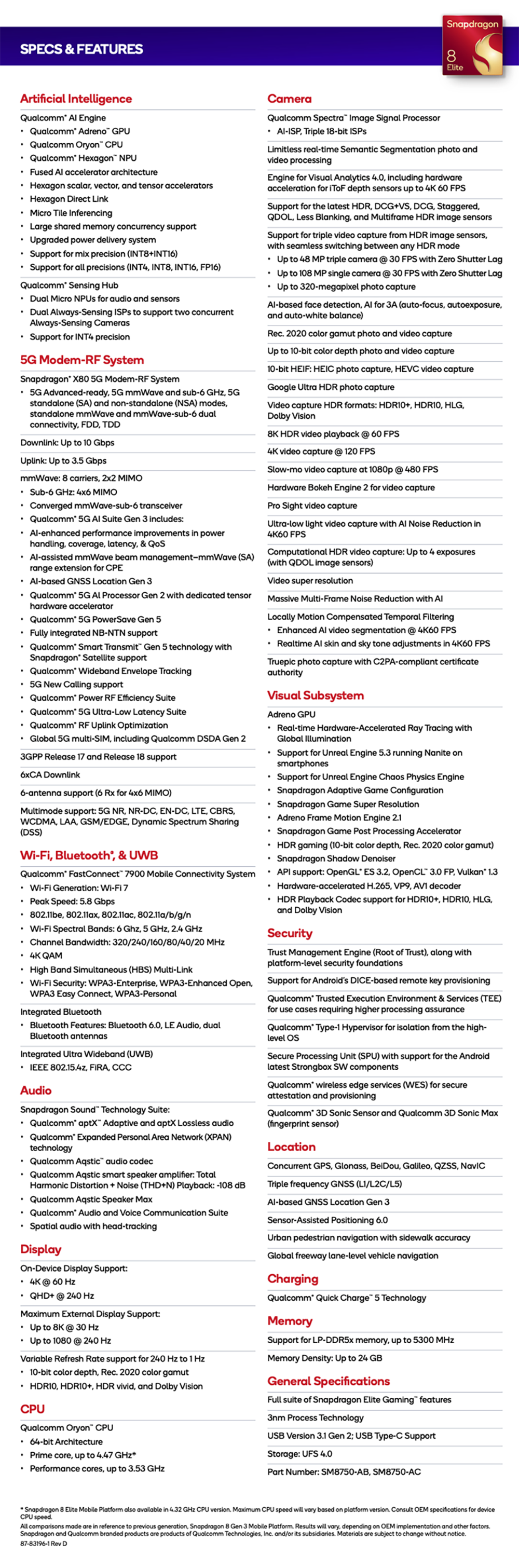 一、第五代骁龙8至尊版:最快移动端CPU,NPU AI性能提升37%