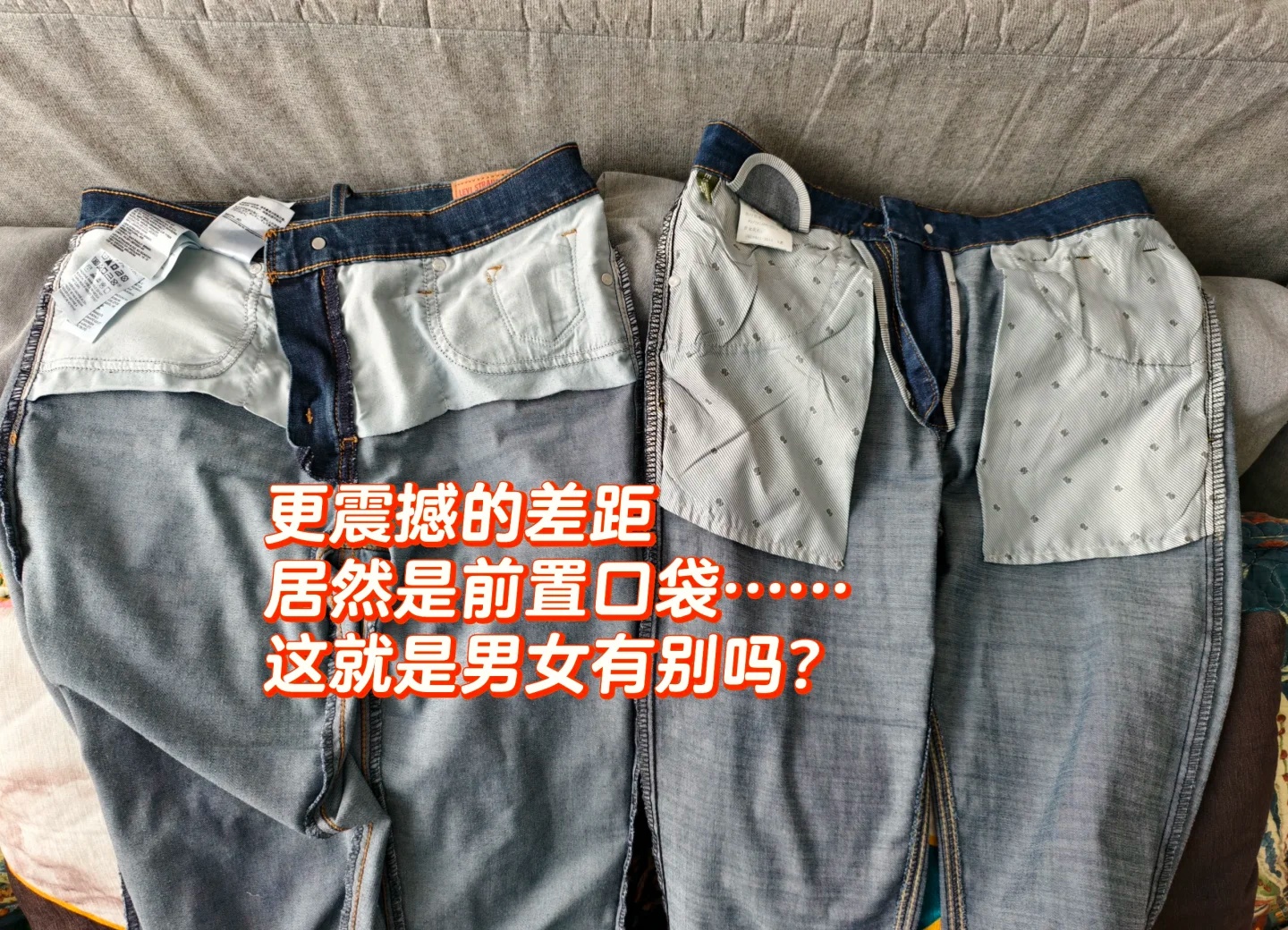 但是你有没有发现有一些细节的地方,男款和女款还是不一样的。就比如说口袋女款牛仔裤的口袋特别浅,装不了太多东西,而男款牛仔裤的裤带比较深,