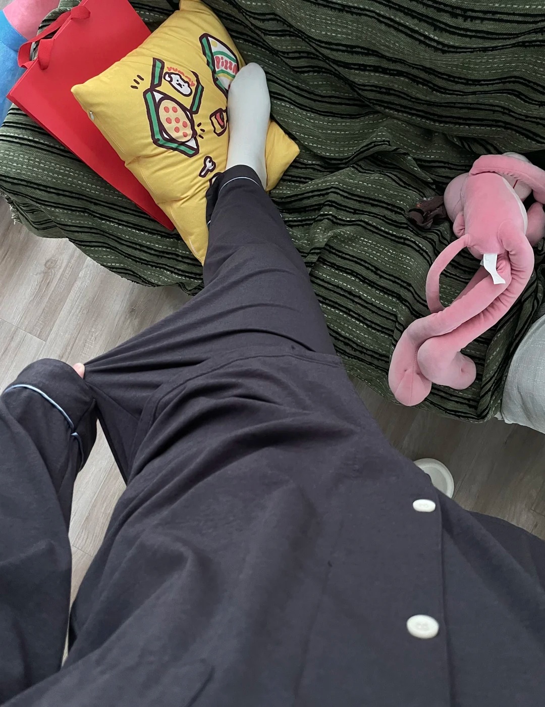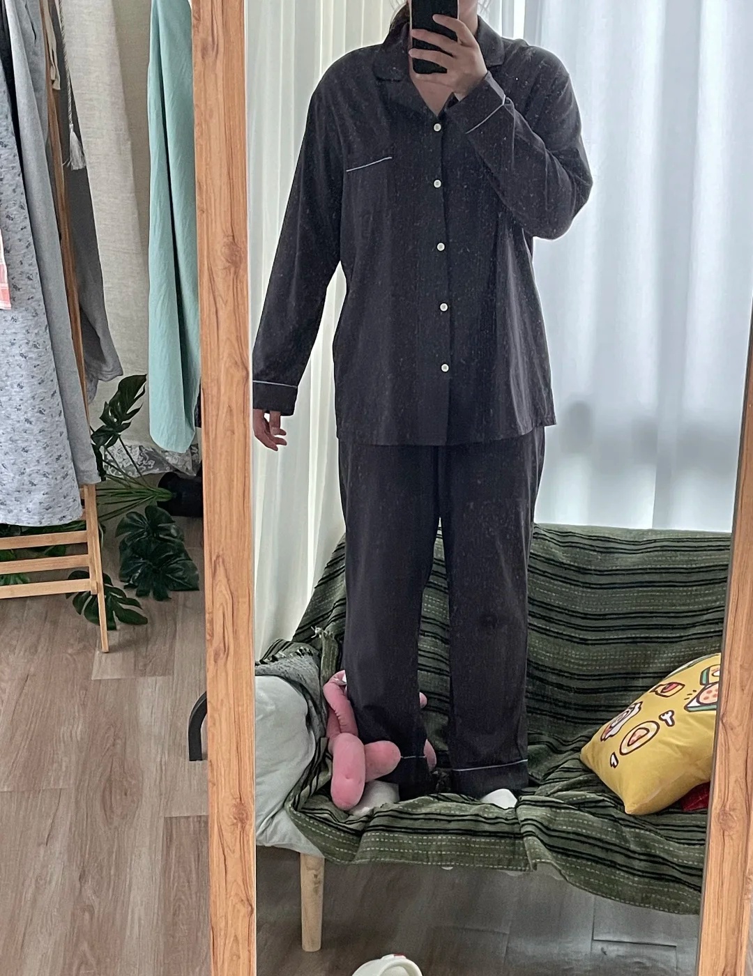 而且不是袖子短就是腿短,好像用料十分精简,换了男士的睡衣就不一样了。睡衣就应该穿宽松肥大的,同样的睡衣不如买男款,你会发现裤子也很紧,面料足足的。