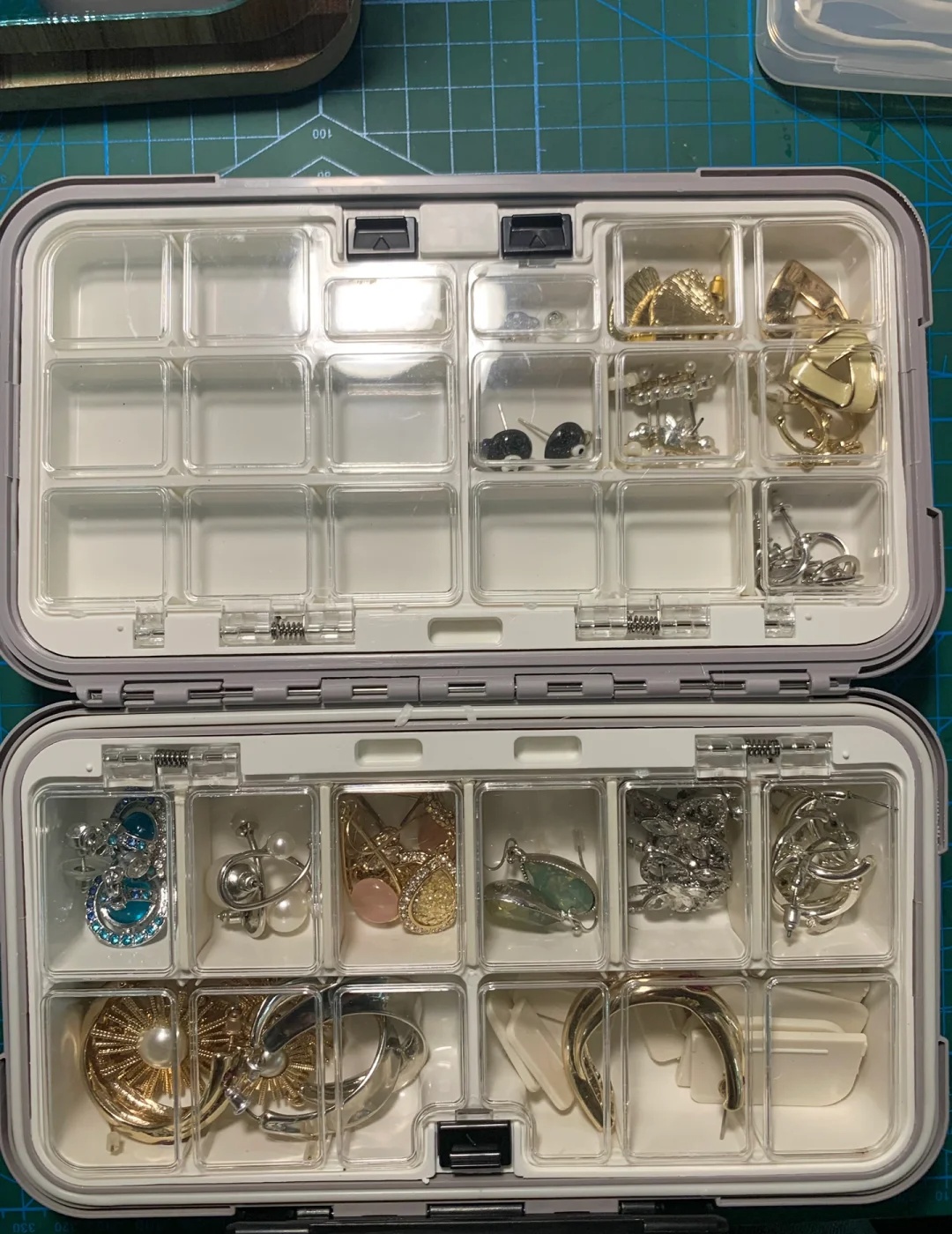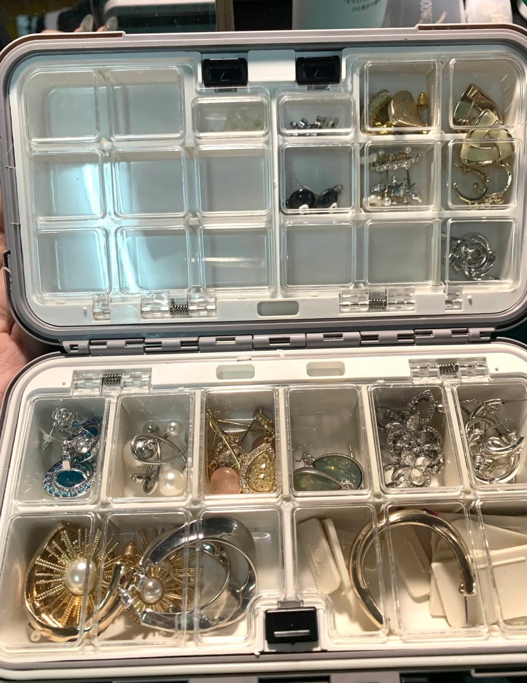 不要去买太贵的首饰盒,可以使用男士的渔具盒来代替男士的渔具盒材质透明,每个里面都有很多小格子,正好可以用来装首饰,而且轻便拿取也方便,容量也比较大,关键是价格很便宜。