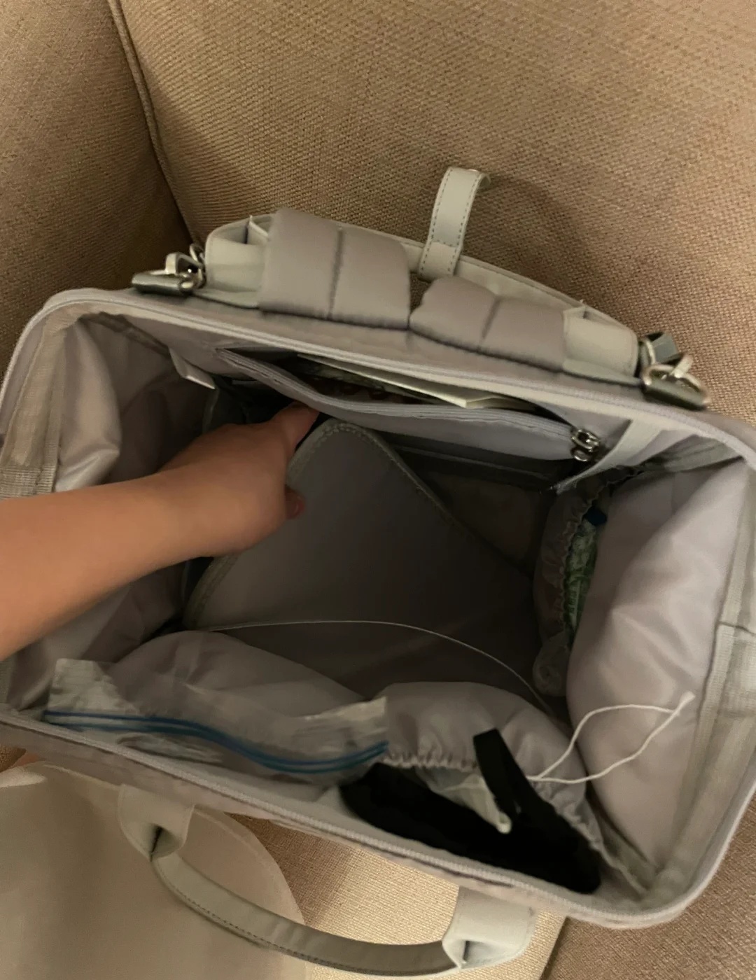 里面的格子非常多,储物空间非常大,用它当母婴包特别好用,出门的时候能改很多东西。
