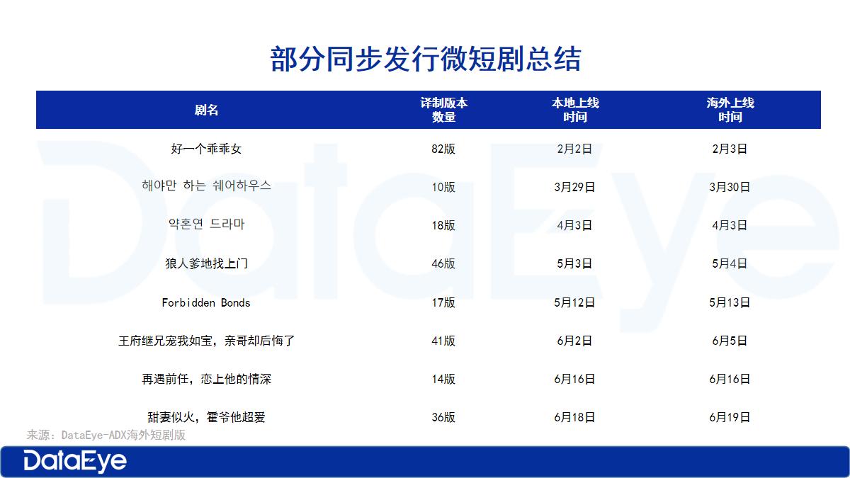 在这一过程中,“本地化思维前置”已成为缩短跨市场时间差、提升内容复用效率的关键。根据DataEye-ADX的数据统计,今年以来,海外微短剧的多语种发行周期显著缩短,从原先相隔数月的译制上线,发展至接近全球同步上线。