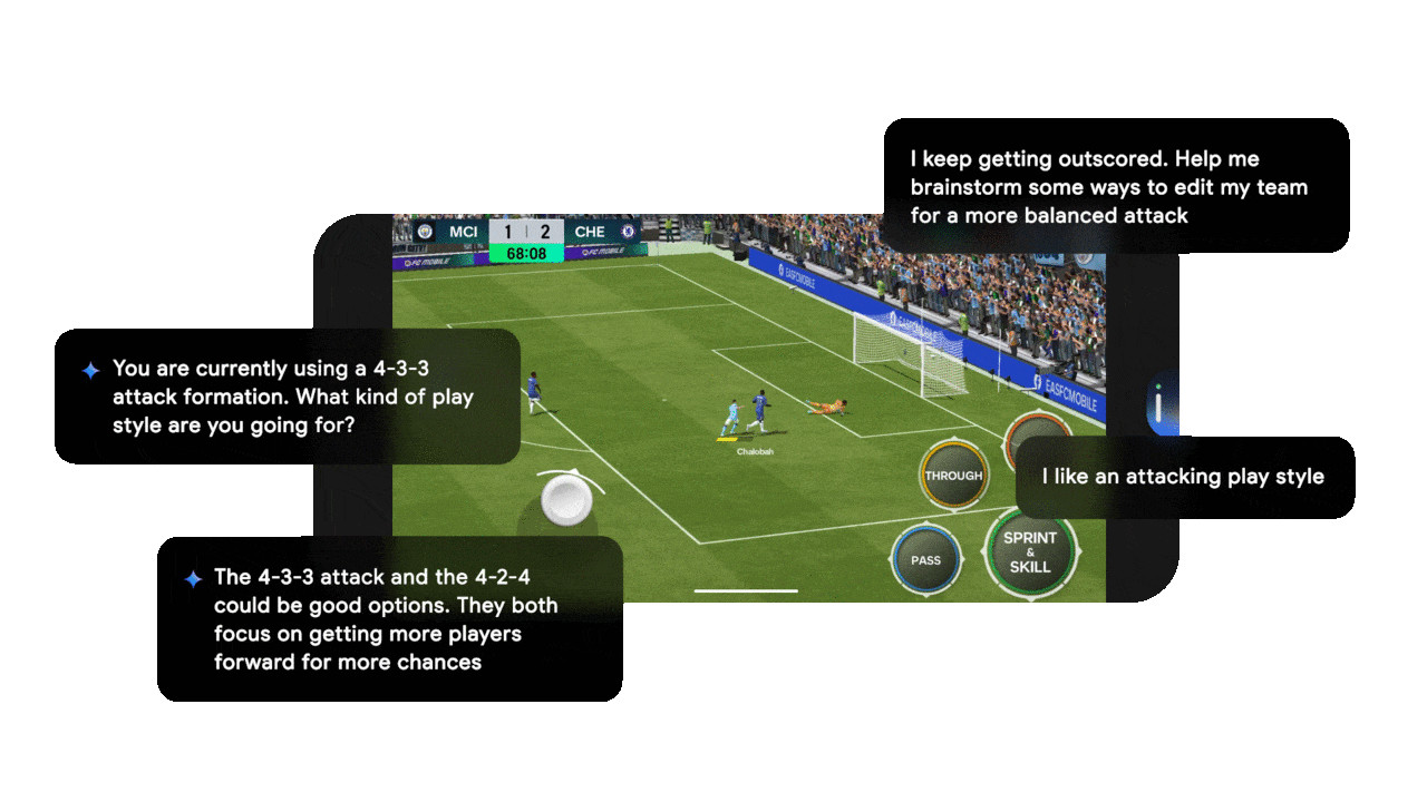 谷歌同日还介绍了一项名为“Google Play 游戏神队友”的游戏 AI 功能,该功能以游戏内浮动窗口的形式向玩家提供汇总的游戏信息并可结合 Gemini Live 为玩家带来无需离开游戏的即时指引。