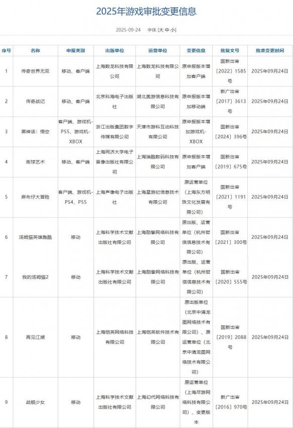 近日,国家新闻出版署公布了2025年9月游戏审批变更信息,《黑神话:悟空》Xbox版以及《麻布仔大冒险》、《战舰少女》等游戏过审。