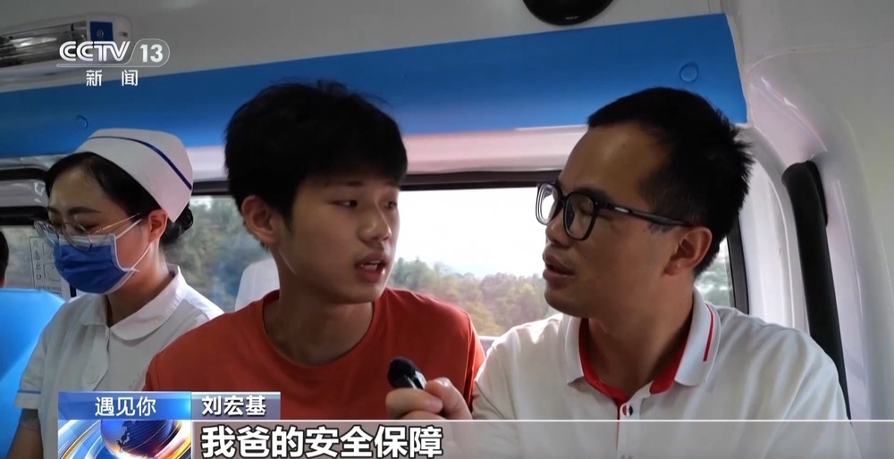 为了保证父子俩顺利报到开学,在当地政府协调下,医院派出救护车护送父子俩踏上求学之路,医护人员每隔半小时监测一次刘生敏的各项生命指标,专业医疗设备随时应对突发情况。
