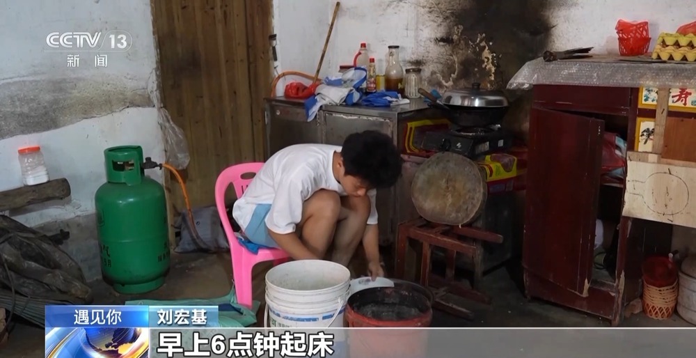 早上上学前,刘宏基会多煮一些饭菜,留给爸爸当作午饭和晚饭,年迈的奶奶到了饭点会来到家里,帮助爸爸加热饭菜。
