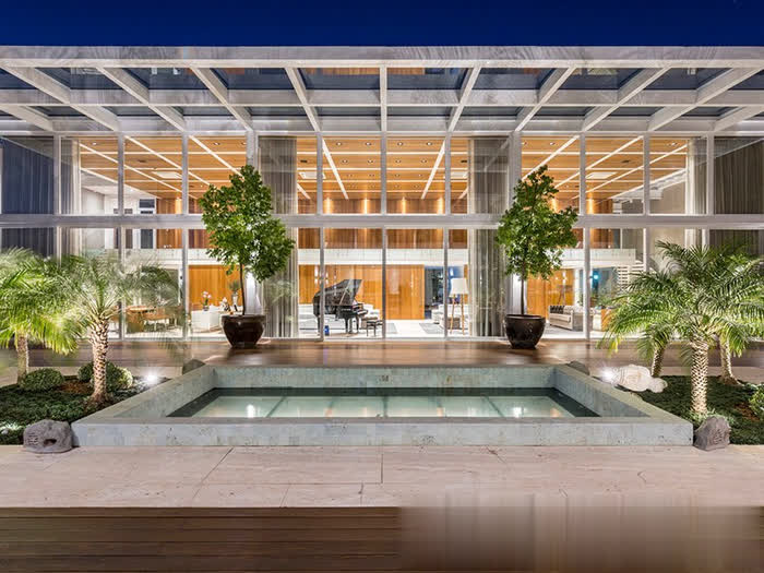 一楼是开敞的公共空间,包括起居室、餐厅、家用办公室、家庭影院和厨房。大型的推拉门可以完全隔绝家庭影院和厨房,也能将它们向起居室完全开敞。背面独立的建筑用作娱乐活动的空间,二楼则是四间卧室套间。