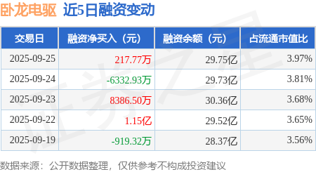 卧龙电驱:9月25日融资买入8.39亿元,融资融券余额30.17亿元