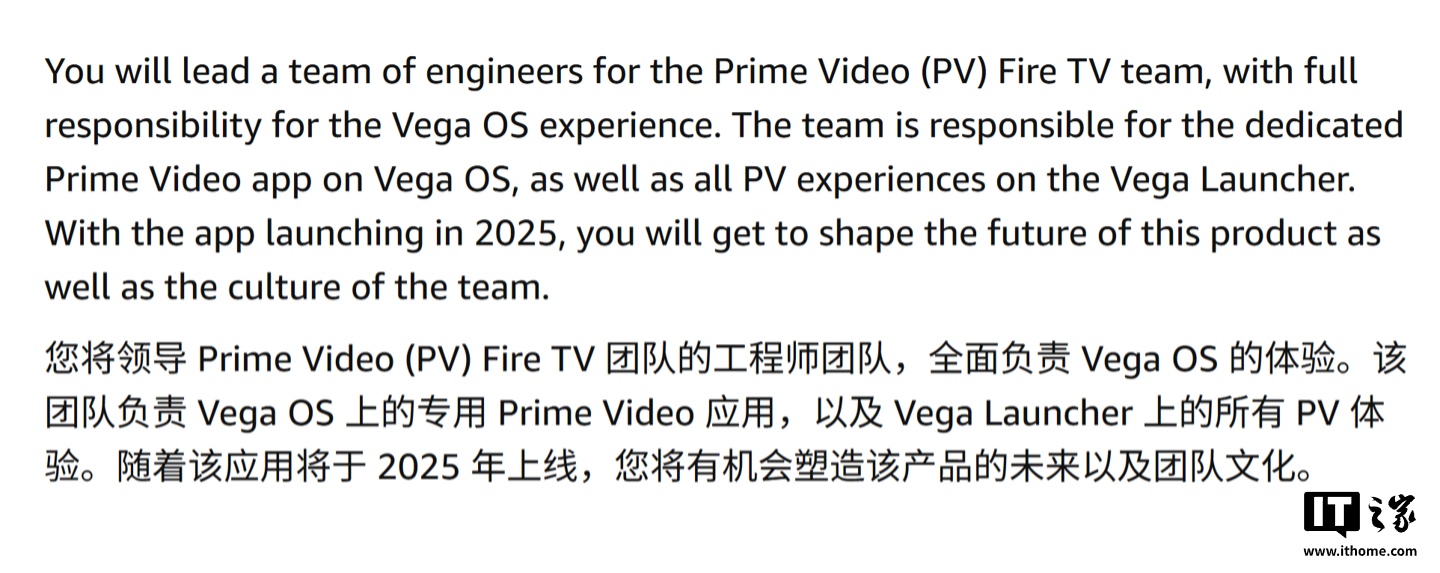 该消息源自一则新招聘信息,职位为 Prime Video 部门的软件开发经理,明确指出 Vega OS 及专用 Prime Video 应用将在 2025 年上线。尽管亚马逊随后删除了招聘信息中的 Vega 相关内容,但业内认为这是迄今最具体的 TV 版 Vega 上市信号。