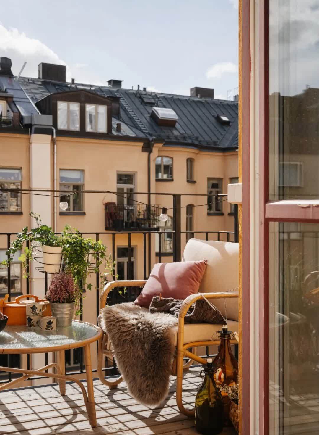 一个充满阳光和柔软布艺的露台,加上藤编家具,有温暖,有故事感,更有情感和生活的流动。坐在藤编椅上,来享受一场自然与时光的拥抱,没有工业金属感,更柔和给人治愈的感觉。