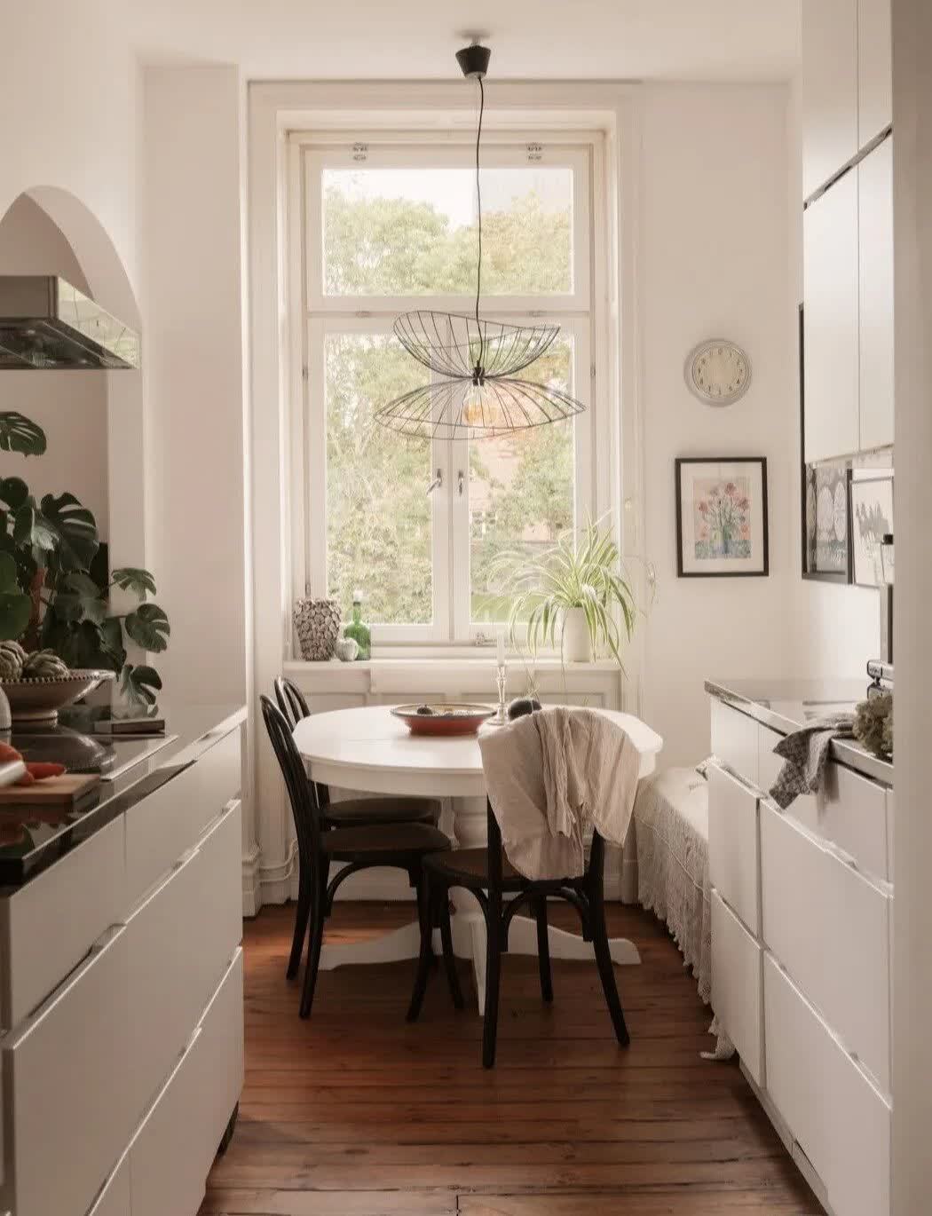 “厨房不用太大,有好看的窗景就行。”这个要求对于很多人来说是梦想,这个公寓却轻松实现了。高大的老式窗户,不仅提升了空间的采光与通风,更成为生活中富有诗意的视觉焦点,让用餐成为一种享受。