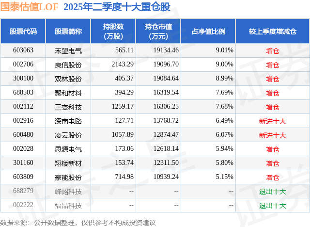 根据2025基金半年报公募基金重仓股数据,重仓该股的公募基金共15家,其中持有数量最多的公募基金为国泰基金的国泰估值LOF。国泰估值LOF目前规模为10.83亿元,最新净值4.4328(9月25日),较上一交易日上涨1.34%,近一年上涨102.39%。该公募基金现任基金经理为王兆祥。