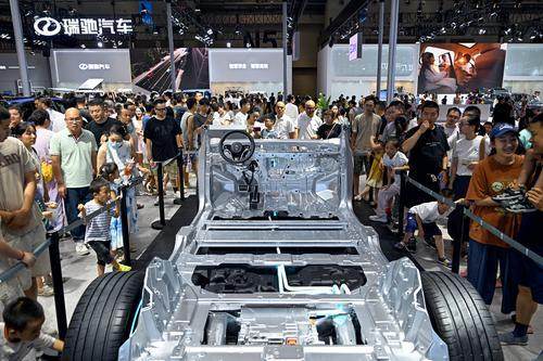 ▲9月5日,重庆悦来国际博览中心,观众在智博会上观看新能源汽车车身结构。当日开幕的2025世界智能产业博览会上,新能源汽车成为专业观众和市民关注的焦点。记者 张春晓 摄