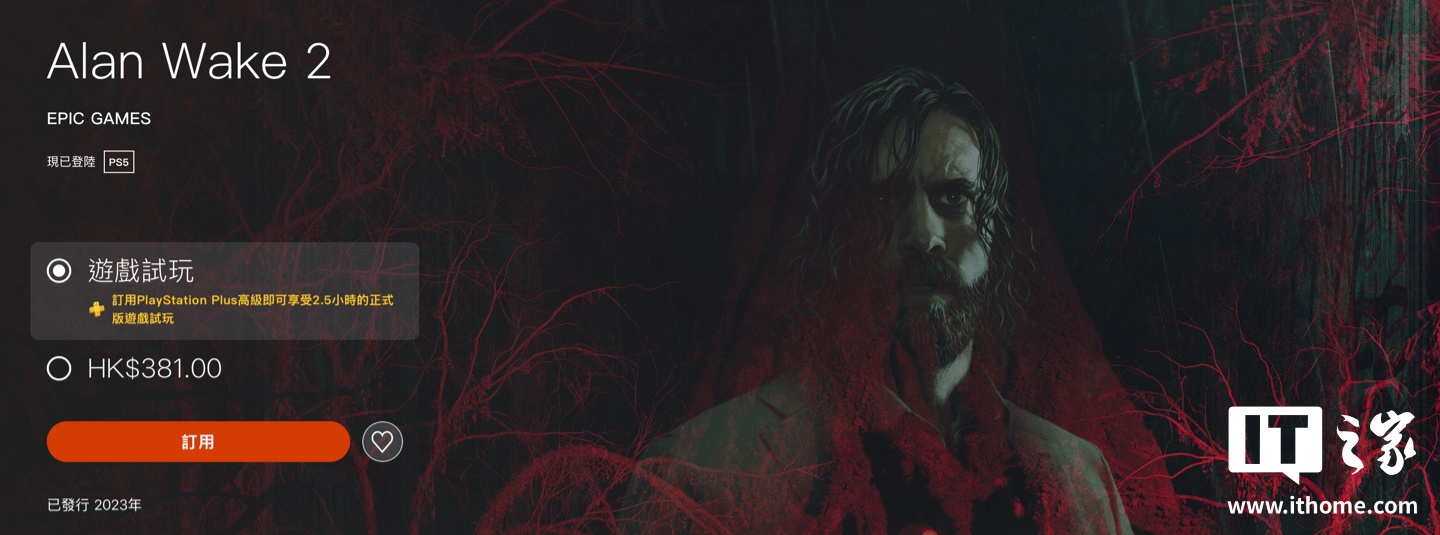 索尼 PS Plus 10 月港服会免游戏公布:《心灵杀手2》等
