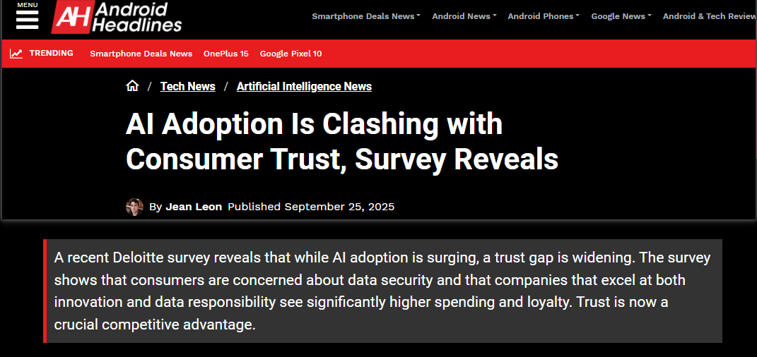 【CNMO科技消息】近日,据外媒报道,尽管人工智能应用正在激增,但信任鸿沟却在扩大。最新机构调查表明,消费者对数据安全存在担忧,而那些在创新与数据责任方面均表现出色的企业,其客户消费额与忠诚度明显更高。也就是说信任已成为一项关键竞争优势。