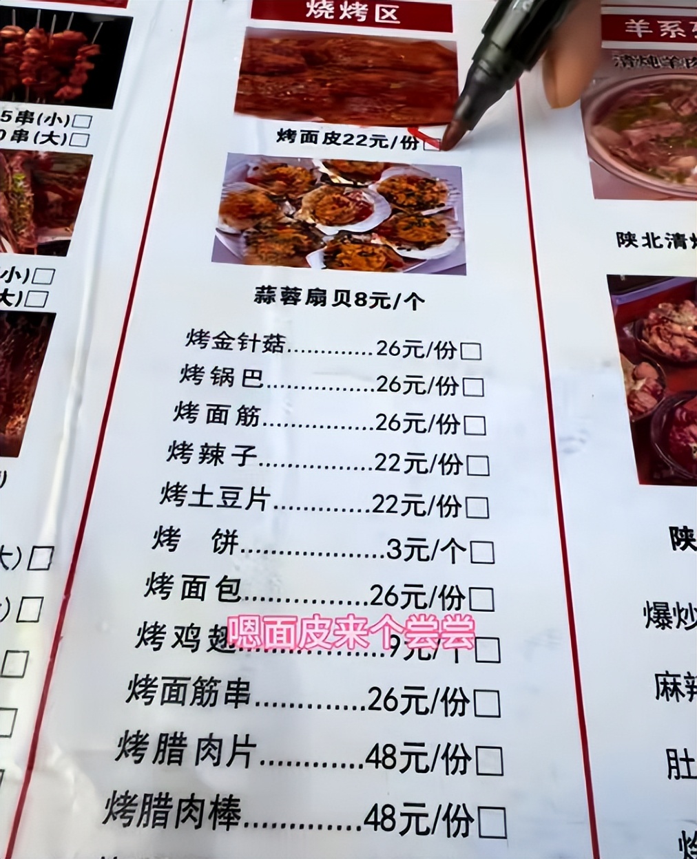 9月26日,博主和朋友来到延安一家烤肉店,在粉丝的建议下,他们是分开点的餐。