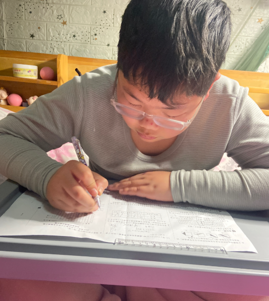 视频中是一个小男孩正在愁眉苦脸做作业,妈妈在旁边监督,再配上一段这样的文案: