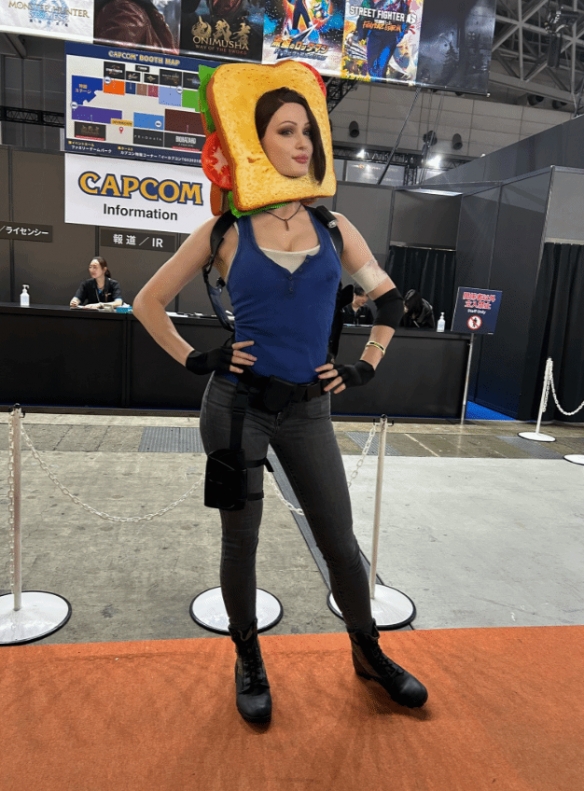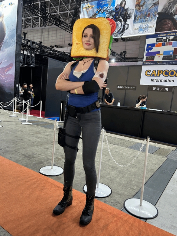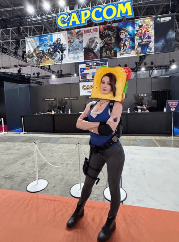 近日,著名Coser@tniwe以《生化危机》中的吉尔形象亮相东京游戏展,她完美身材和高度还原的造型吸引了不少关注,尤其是头顶上的三明治,增添了几分轻松与俏皮。
