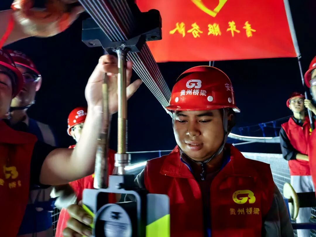 为了攻克大桥耐久性、峡谷强风、山区大跨径吊装这三大世界级难题,2021年7月,贵州桥梁集团在花江峡谷大桥项目部专门成立技术带头人吴朝明领衔的工匠人才创新工作室,29名职工组成生产突击、科研攻关等5个小组。他们扎根崇山峻岭,鏖战悬崖绝壁,解决了一个又一个桥梁建造领域的世界级难题。