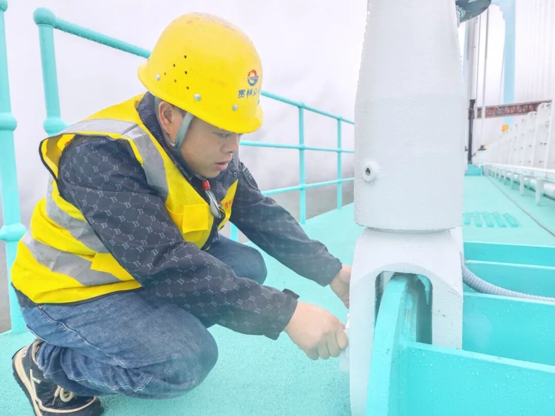 “冬天的风裹着寒气,手冻僵了连安全绳都攥不紧。”那是2023年修建主塔时,正在施工电梯里的李平安和同事,突然遭遇8级大风——按照规定,电梯超过6级就不能运行,他们被困在高空整整40分钟。更惊险的是今年5月,桥面附属施工时,一阵14级大风突然袭来,钢梁在高空剧烈摇晃,李平安差点被吹到栏杆边,现场所有人都捏了一把汗。