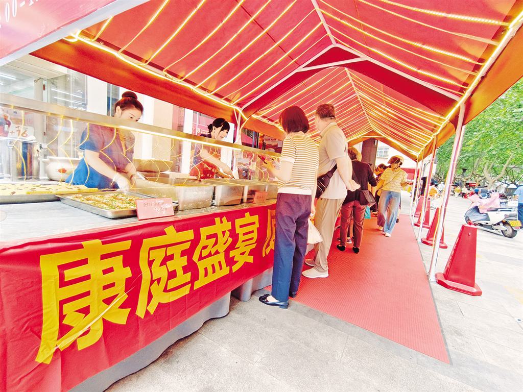 酒店出摊对于拉动周边消费、促进区域经济微循环更是有着不可小觑的积极影响。随着酒店摊位的出现,周边人气迅速聚集。不仅酒店自身的相关商品销量节节攀升,周边的其他商铺也跟着沾了光,客流量明显增多,形成了一种协同发展的良好态势。紧邻康庭盛宴的一家便利店,原本只是做着周边居民日常所需的小生意,销量一直不温不火。但酒店摆摊后,人流量大增,很多顾客在买完便民餐后,顺道就走进便利店买点饮料、零食等。“一些原本销量平平的特色小食品,现在都成了抢手货,店里的销售额较以往提升了近30%。我现在补货的频率都由一周一次变成两天一次了。”便利店老板欣慰地说。
