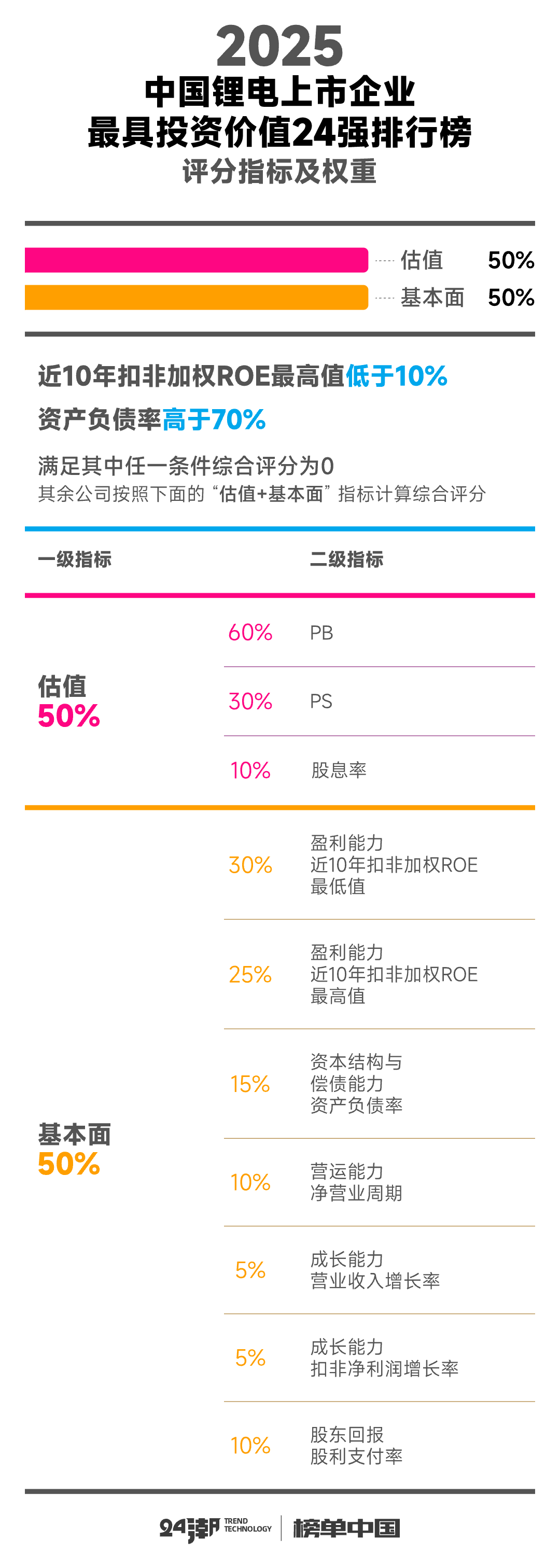 当时我们从持续盈利能力、成长能力、资本结构与偿债能力、股东回报、估值等十个多维度全面评比中国锂电上市企业综合投资价值,并重磅推出了 “中国锂电上市企业最具投资价值24强排行榜” 。