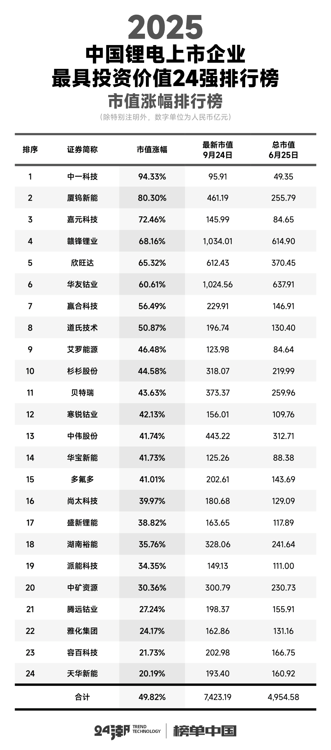 上涨49.82%!重温中国锂电上市企业最具投资价值24强排行榜|独家