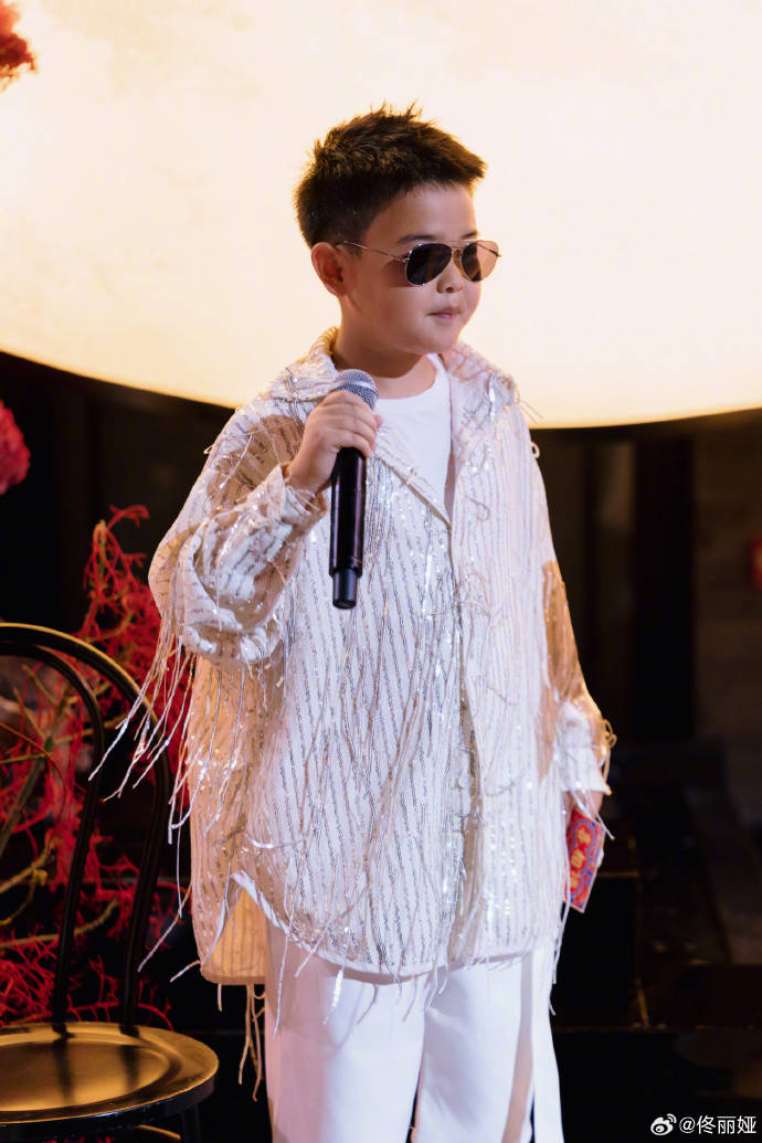 表演时,佟丽娅手持手机记录下儿子帅气的身影。照片中,朵朵戴着墨镜,身着闪闪发光的服装,手握麦克风,一站上舞台,气场全开,魅力十足。