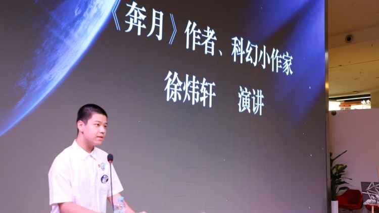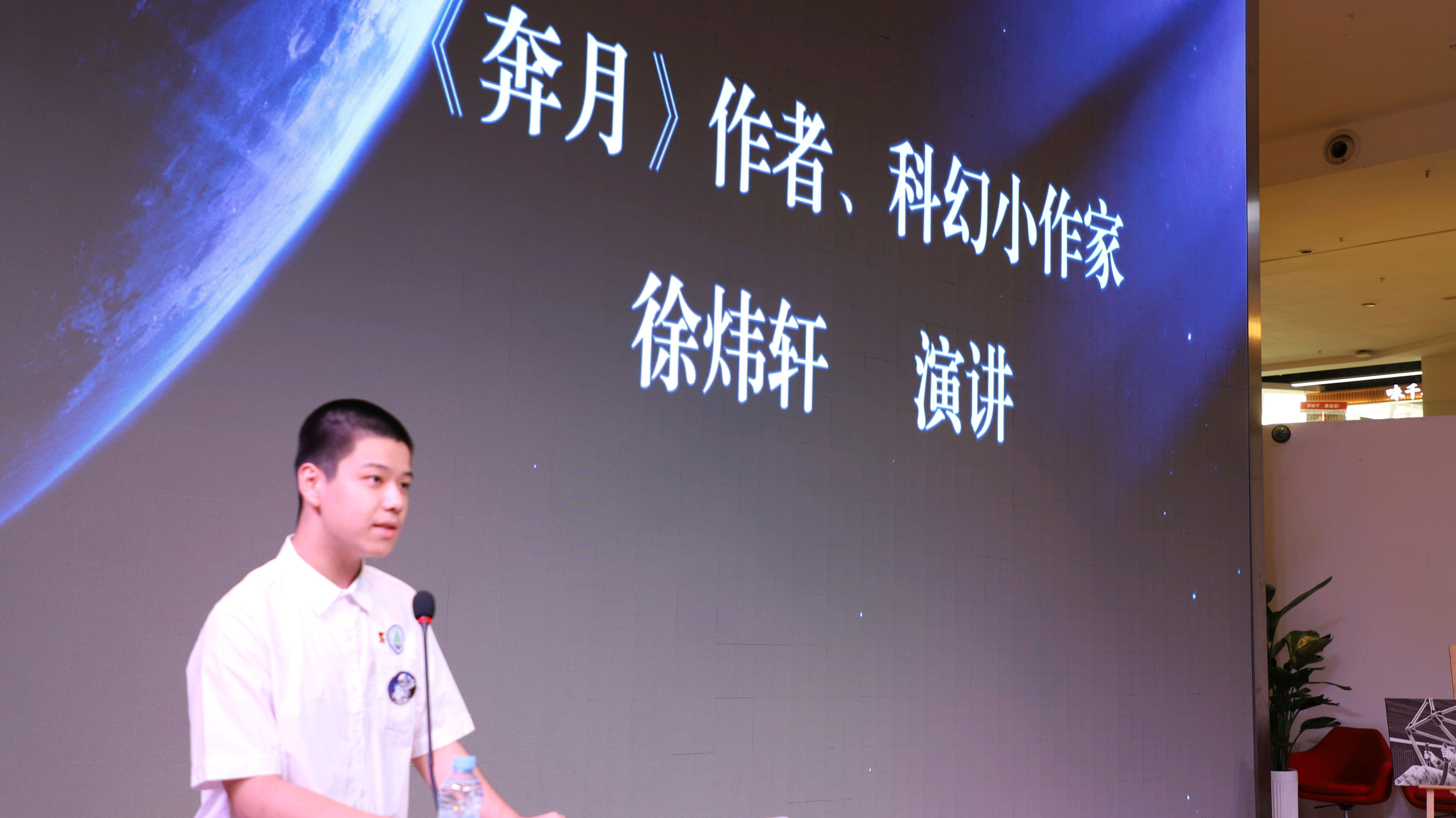 《奔月》完成初稿时,徐炜轩还在上小学六年级。《奔月》是他出版的第二本长篇科幻小说。徐炜轩同现场观众分享了自己的创作历程与感悟,其对航天的热爱、对写作的坚持,深深感染了青少年读者。