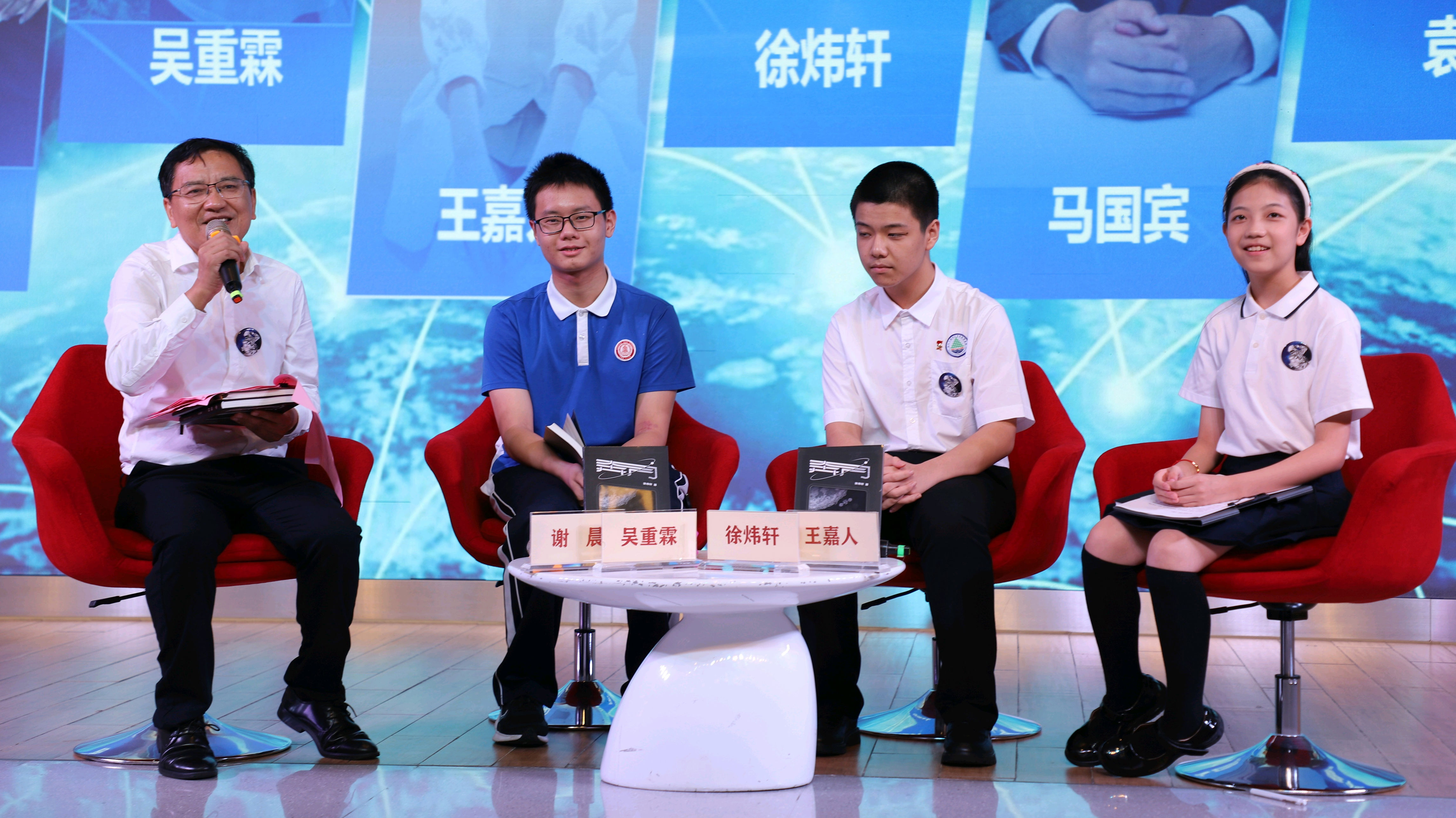 福田实验教育集团总校长王君健介绍学校高度重视科创教育、文学教育,徐伟轩《奔月》源于航天科技和文学创作两大爱好,这是“创感课程”理念下教育教学成果的集中体现。