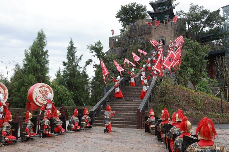 “开城门,迎客——”伴随着一声嗓音雄浑的高呼,号角齐鸣;身着铠甲、手持长戟的“守城将士”列队而立,在他们身后,寨门缓缓开启……仿佛将人带回了那个“以数千抗十万,保峡江半壁无虞”的烽火年代。