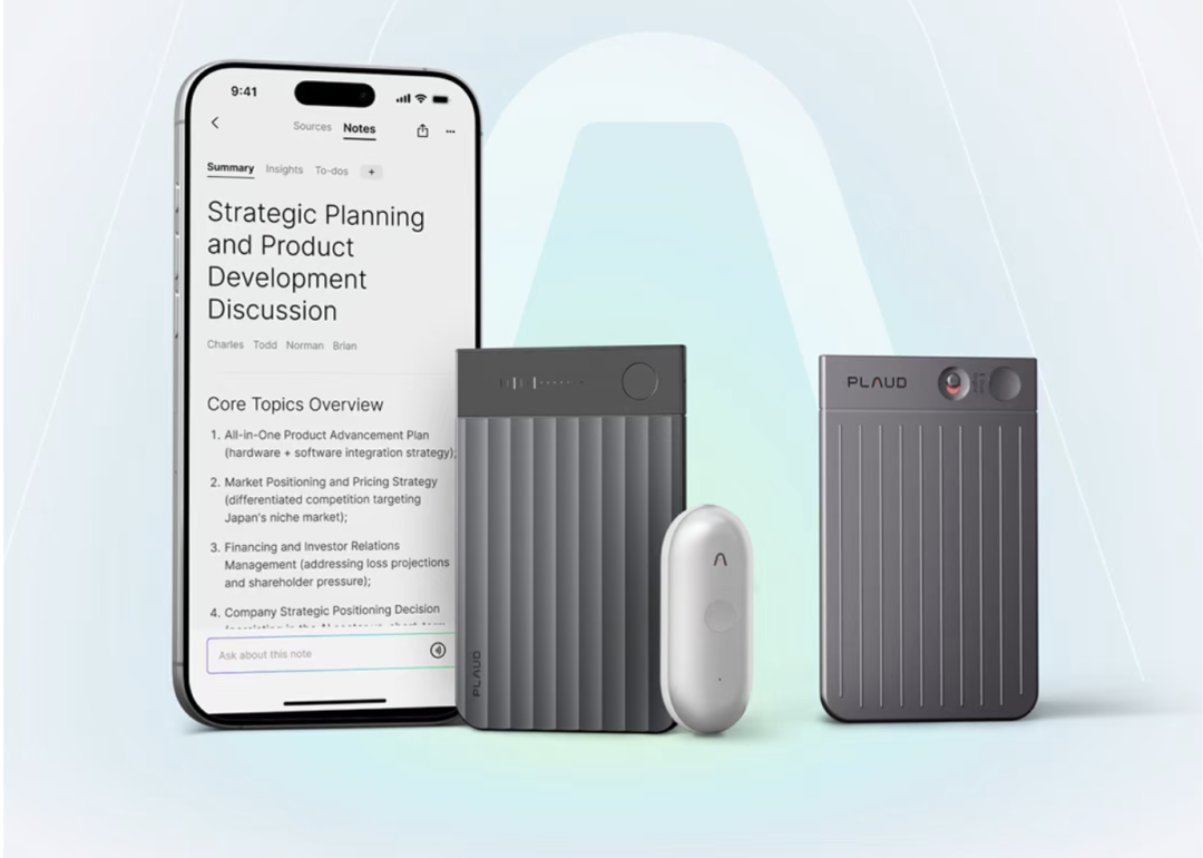 Plaud通过“硬件+订阅”模式解决了这个问题。其初代产品Plaud Note,形态是一张可以磁吸在手机背后的超薄卡片,搭载ChatGPT等AI模型。硬件解决录音,而订阅服务则负责后续的AI智能转写与会议总结。