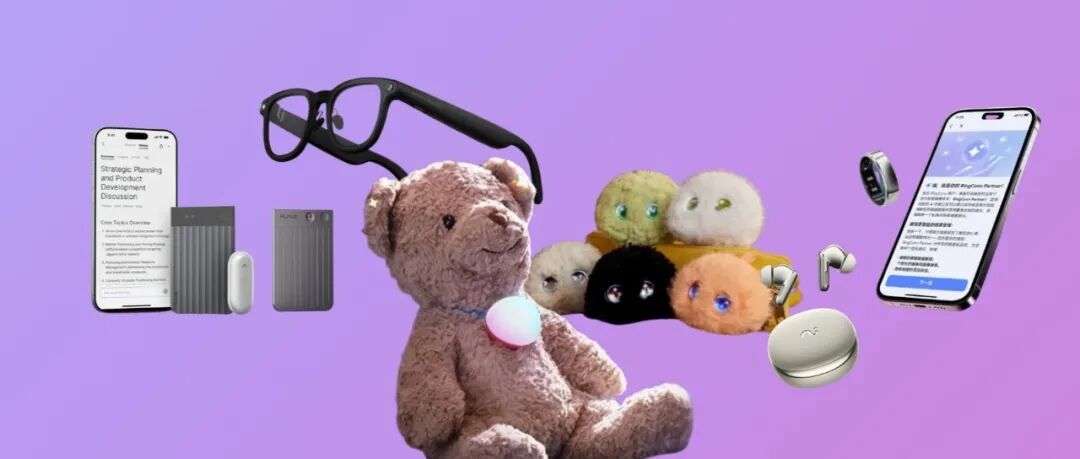 这让人不禁好奇,这些率先获得市场验证的“爆品”究竟做对了什么?我们试着从AI玩具、AI录音卡、AI耳机、AI眼镜、AI戒指等五大垂直领域,盘点了各个细分赛道的代表性产品,一起看看有哪些好玩的AI硬件产品值得关注。