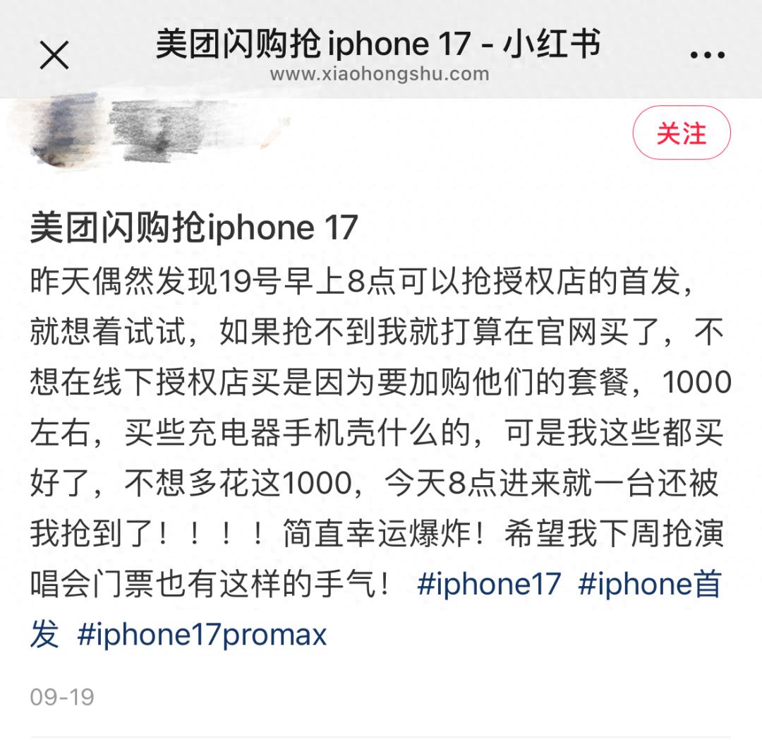 不仅是小米,最新发布的iPhone 17 也在美团闪购首发。