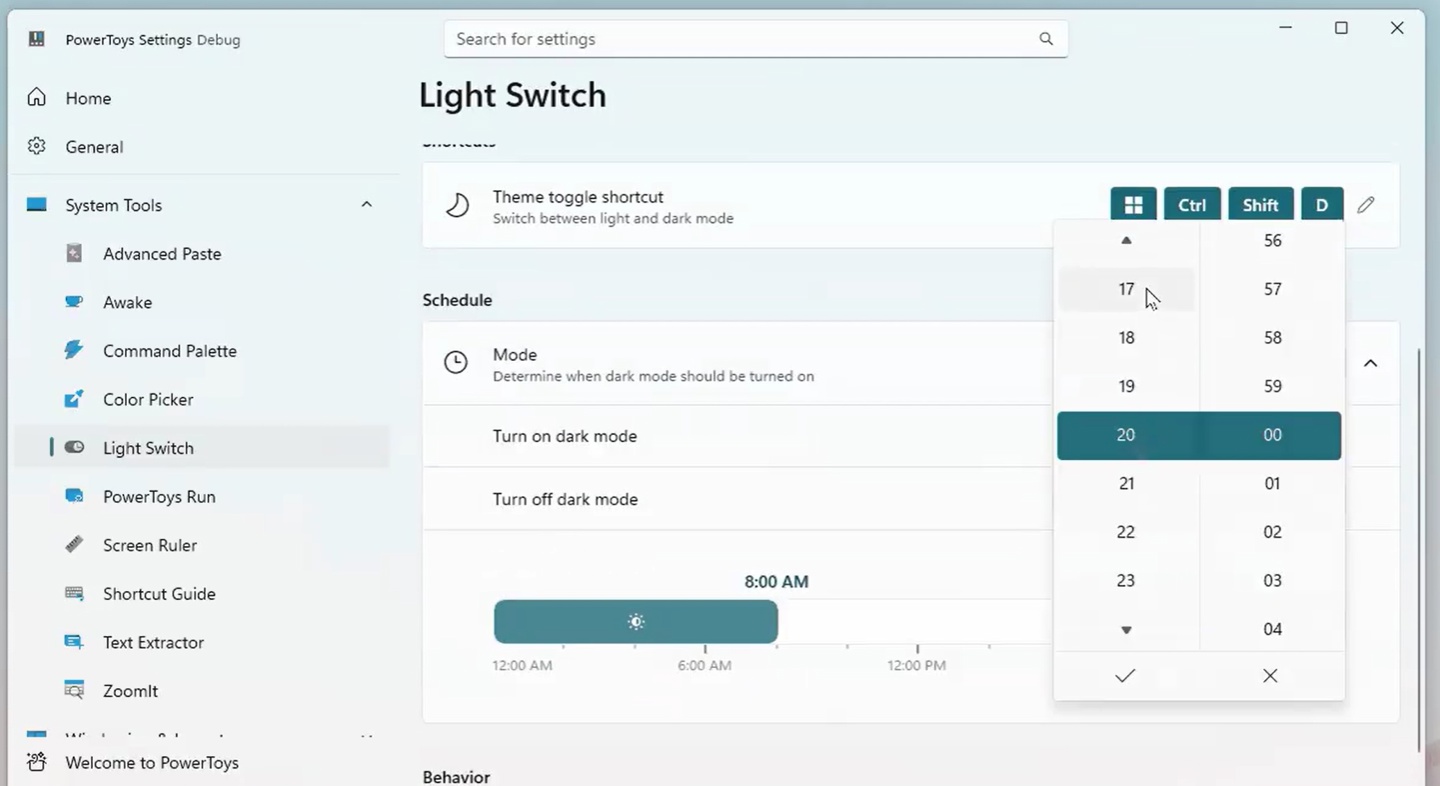 IT之家援引博文介绍,这款工具的核心功能,类似于苹果 macOS 的动态主题(dynamic theme)功能,是让 Windows 11 能够根据预设的时间表,自动切换深色与浅色模式。