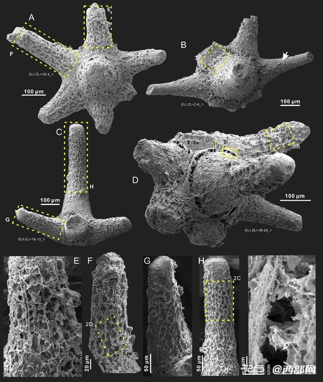这次西北大学研究团队发现的来自我国华北板块寒武纪早期猴家山组的开腔骨骨片,为我们揭秘了这一科学难题。团队对这些极其微小的开腔骨骨片开展了系统研究,发现了这些骨片上存在大量以黏土矿物保存的多边形结构,如同“蜂巢”一般包覆整个开腔骨骨片。