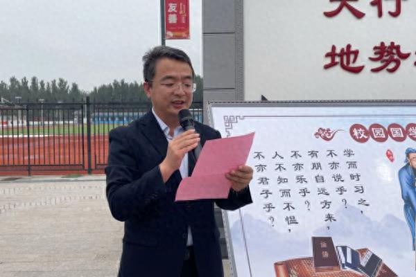 揖礼过后,经典诵读环节拉开帷幕。“下面,请全体同学齐声诵读《论语·尧曰篇》。”主持人话音刚落,清脆而坚定的声音便从学生队伍中响起:“不知命,无以为君子也;不知礼,无以立也;不知言,无以知人也。”这短短数语,是孔子关于处世修养的智慧箴言,随后全体师生齐声跟读,古朴的文字在校园中回荡,仿佛穿越时空与先贤对话。