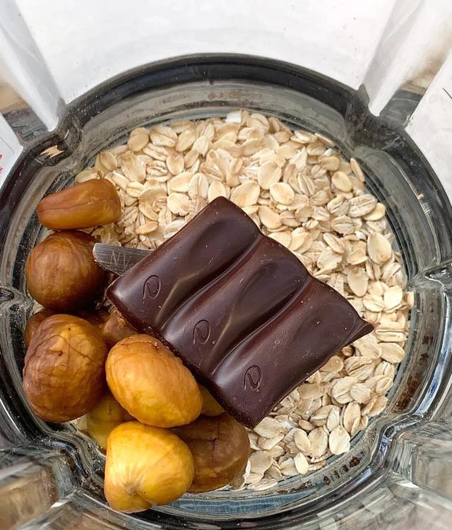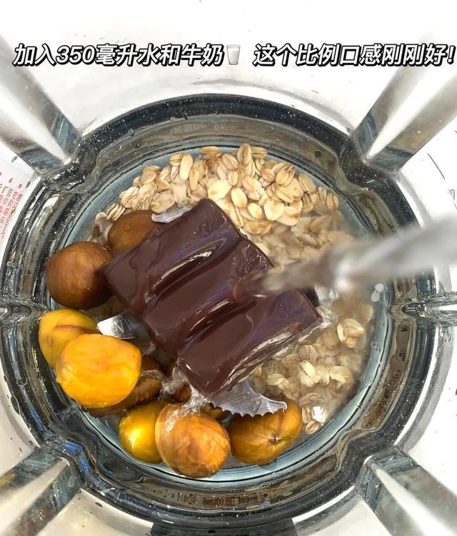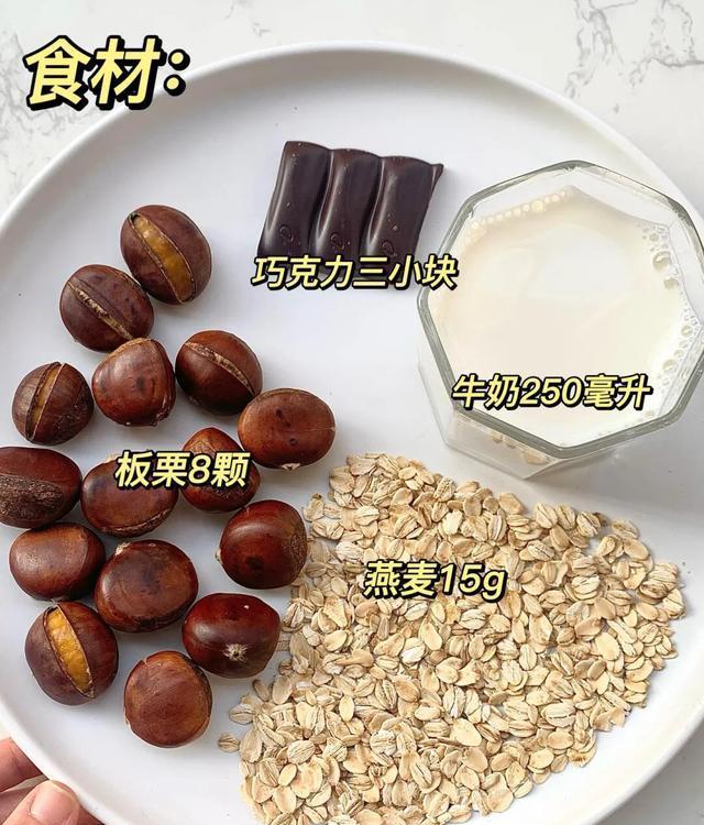 8颗剥壳板栗15克燕麦3小块巧克力250毫升牛奶