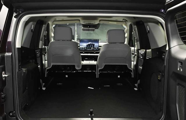 坦克400Hi4-Z的长宽高分别是4964/1970/1905mm,轴距2890mm,当然,还是中大型SUV的定位。车内配备了舒适的皮质座椅,内部填充了大量软性材质,前排座椅带侧翼,坐上去,支撑感和包裹感很明显。后排座椅配备了隐藏式中央扶手,内含杯架,拉下来就可枕手或者放杯。得益于尺寸的设计,前后的乘坐空间都很充足,就算三个成年人坐在后排都不会觉得局促。后备厢的平整度很高,将后排座椅40:60放倒后,能进一步提升储物空间。