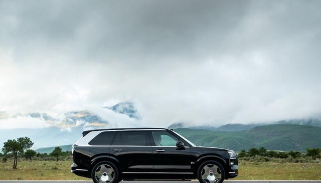 整车身形庞大,豪车常见的前高后低的游艇比例为9X营造尊贵感,保留传统机械门把手,D柱使用银色的装饰包围形成悬浮车型设计,这个设计并没有随着中网一样提供个性化选择,所以浅色、深色以及全黑的曜黑版的9X呈现出不同的视觉感受。