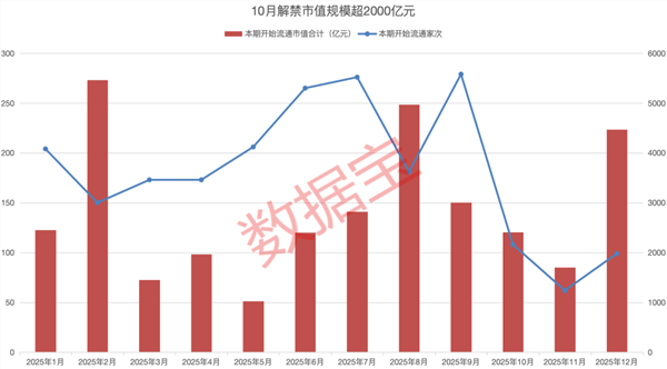 10月解禁市值2407.28亿元。 当地时间10月1日,受美国政府“关门”的利空影响,美股开盘后,三大指数一度全线跳水,随后逆转,震荡回升。截至收盘,道琼斯指数涨0.09%,创历史新高;标普500指数涨0.34%;纳斯达克综合指