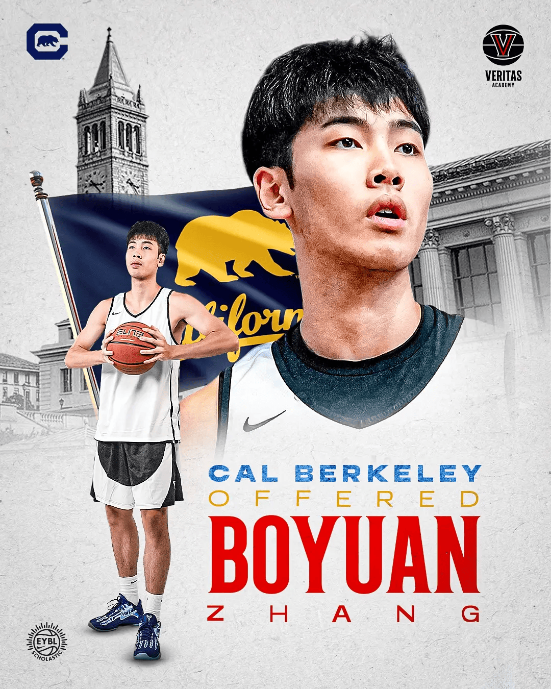 配文:下一站?伯克利?正式恭喜我们的球员张博源收到 University of California, Berkeley 加州大学伯克利分校 的录取! 这是他的第一个 High Major offer。