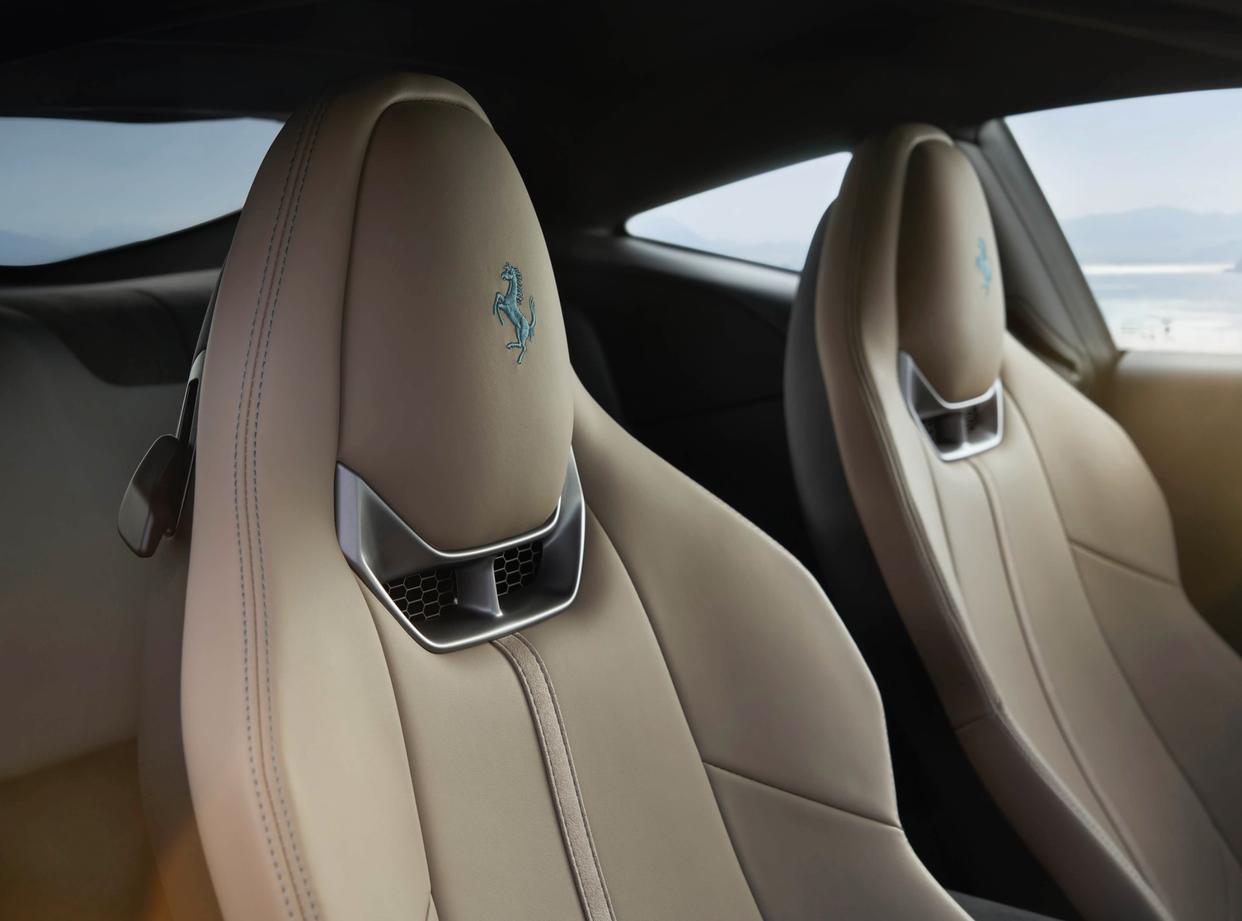 法拉利Amalfi采用了官方称之为“双座舱”的设计理念,并使用了全新的HMI人车交互界面。双座舱采用了质感细腻的真皮材质和Alcantara面料的交替铺陈,再加上大面积碳纤维材质面板的点缀和精致的手工缝线,完美地演绎了低调与奢华。全新的三屏式人机界面成为车内焦点,包括15.6英寸数字仪表盘、10.25英寸中控触控屏,以及副驾驶专属的8.8英寸屏幕。以及采用了与SF90相同的集成触控功能的三辐式多功能方向盘,两侧配备了大尺寸换挡拨片,方向盘内部4点方向还配备了Manettino旋钮,并伴有有WET、SPORT、RACE、CT OFF、ESC OFF五种驾驶模式,将会带来了全新的操控体验。此外,Burmester 14喇叭音响系统提供1200W功率,带来接近音乐会水准的细腻音质。