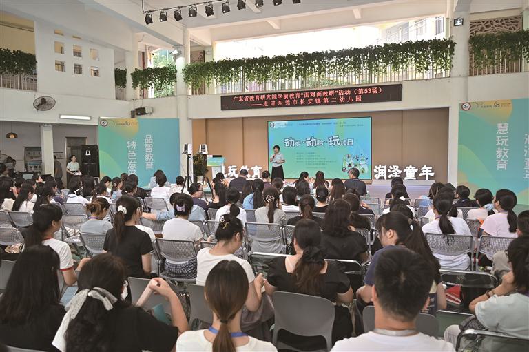9月28日上午,广东省教育研究院学前教育“面对面教研”活动(第53场)在长安镇第二幼儿园举行。本次活动以“动手·动脑·玩项目”为主题,采用“线上直播+线下互动”的方式,专家和幼教工作者共同参与交流探讨。