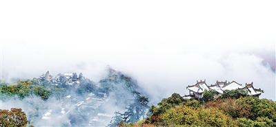 好似历经千辛终得功成的侠者,上了“天梯”,稍缓精神,须臾即到揽云亭,这里是崆峒山视野最佳的观景台。历经千余年,凝重典雅的八台九宫十二院、气势宏伟的42座建筑群、72处石府洞天等在山林里拔地而起。倚亭左右环顾、上下遥望,其中的大部分映入眼帘。与之遥遥相望,雷声峰格外挺拔,雷雨时节,峰旁峡谷能将轰鸣雷声放大数倍,用声音为这座勇武之山写下注脚。