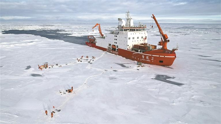 “前几次参加北极科考时,经常遇到船破不动冰,需要不断倒退,再加速冲撞破冰。‘雪龙2’号很少出现这种情况,它的破冰能力和操控能力令人惊叹。”本次考察队首席科学家助理、自然资源部第三海洋研究所副研究员宋普庆说。