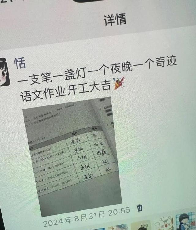 除了偶尔拍戏,她的生活重心全在学业上。今年开学季,她晒出自己赶作业的朋友圈截图,配文“语文作业开工大吉”,下面一群同学点赞调侃。