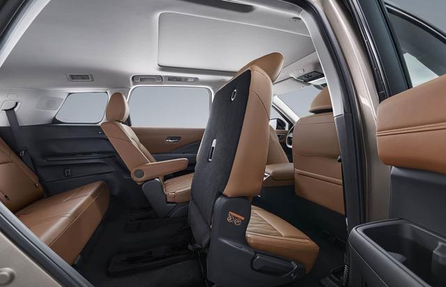 座椅方面,探陆提供6座版车型和7座版车型,6座版是2+2+2的座椅布局,第三排座椅其实是3座,只不过把中间头枕拆卸了,这样就符合规矩了。无论是6座版还是7座版,第二排座椅都支持前后调节和靠背调节。